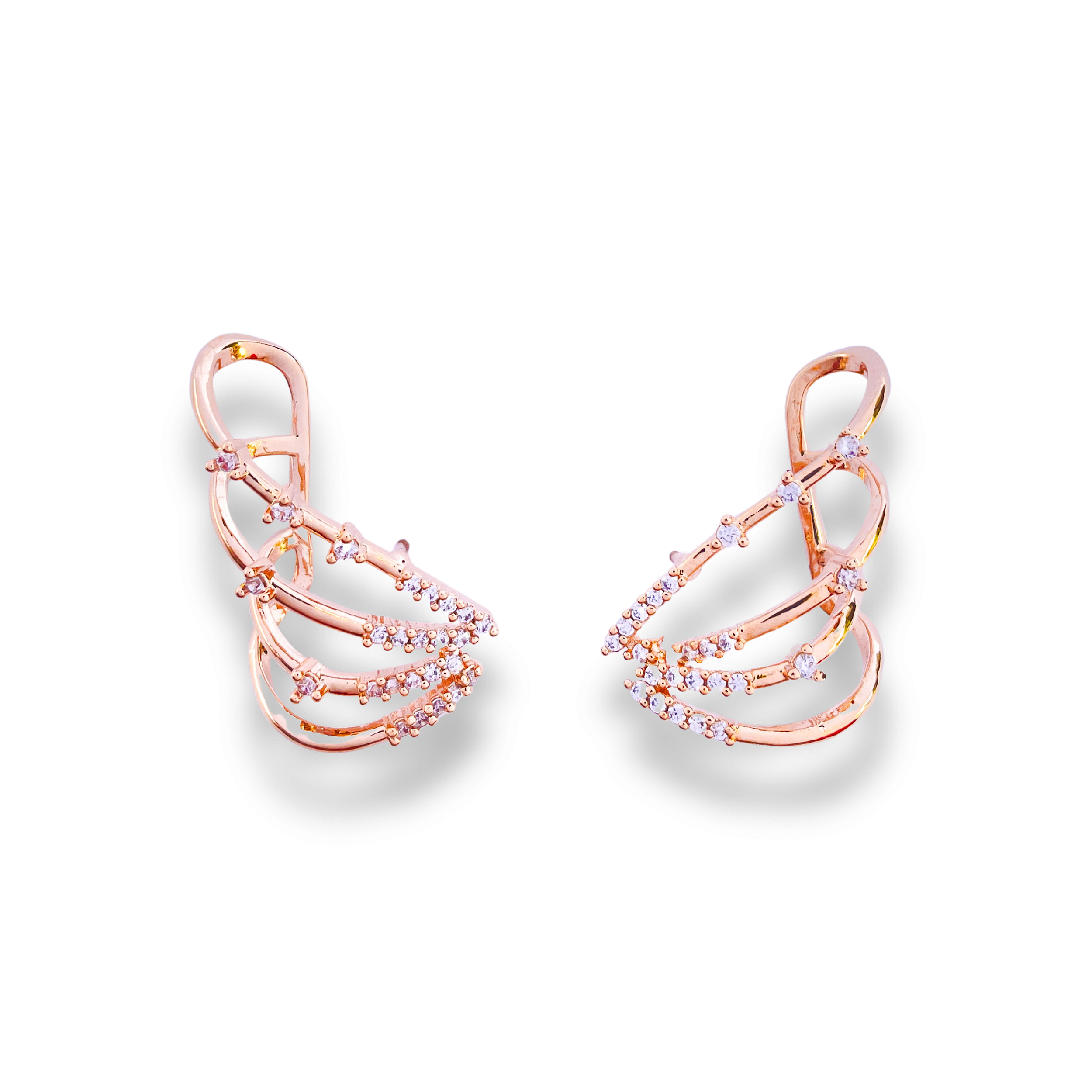 Brinco folheado a ouro 18k em formato earcuff com strass