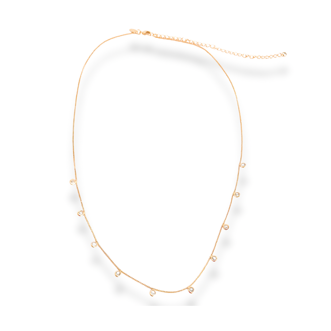 Colar tipo chocker folheado a ouro 18k em corrente veneziana de 40cm com 10 mini pontos de luz.